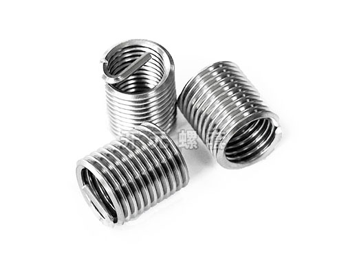 描 述:鋼絲螺套是一種新型內螺紋緊固件,它是由高強度、高精度、高表面質量的耐蝕菱形截面的鋼絲繞制而成,形如彈簧。鋼絲螺套裝入螺孔中,鋼絲螺套的外表面靠彈力貼合在螺孔上, 其內表面形成新的螺紋,用于擰入螺釘或螺栓,使螺釘或螺栓不直接與基體接觸,保護了基體及螺釘,起到延長螺紋使用壽命、增加螺紋連接強度、增大螺紋受力面、增加螺紋連接的承載力和抗疲勞強度、抗震防松脫等作用。在鋁、鎂合金等低強度工程材料上應用可以明顯提高螺紋強度和耐磨性,同時鋼絲螺套還改善了螺紋的受力情況,使螺紋整體用力,提高了螺紋聯接的強度。